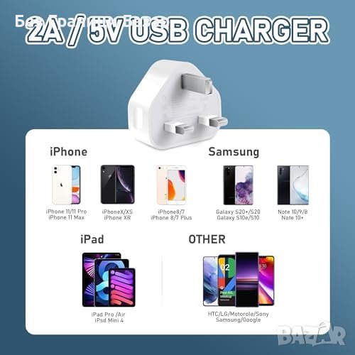 Нови 3 броя Бял USB Заряден Адаптер за iPhone/Samsung - Бързо Зареждане