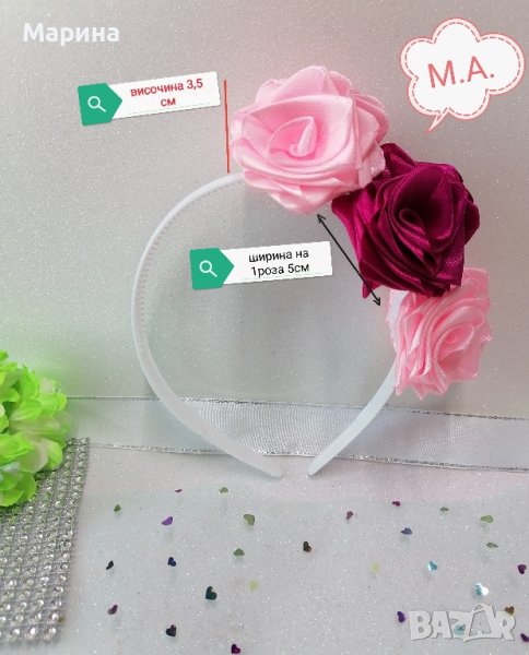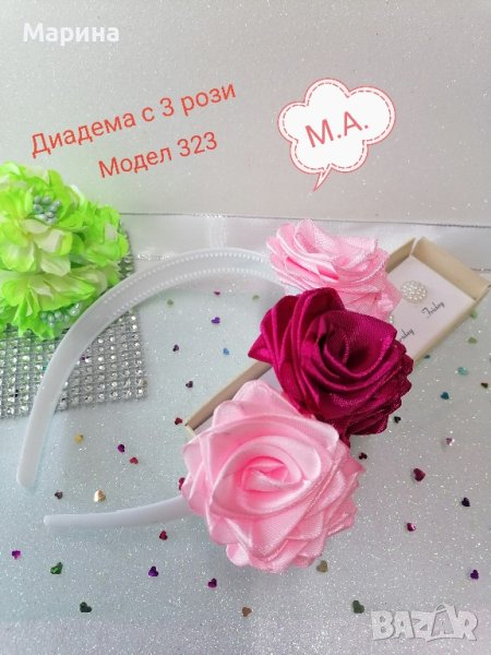Диадема 3 рози малиново-розово, модел 323 → Обява 44259778