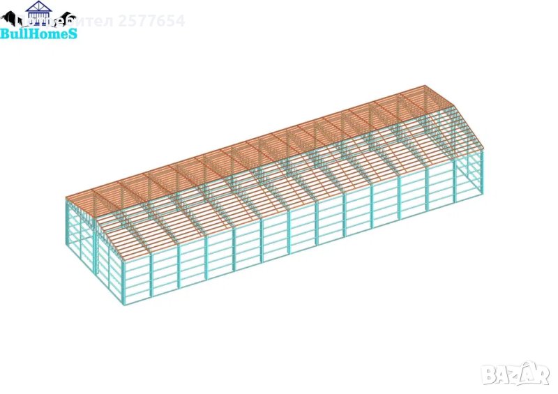 Конструкция за Хале, склад 480м2 -12м х 40м х 5м - етап Конструкция - готови за сглобяване профили. СОБСТВЕНО