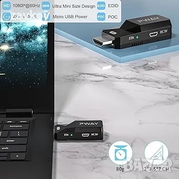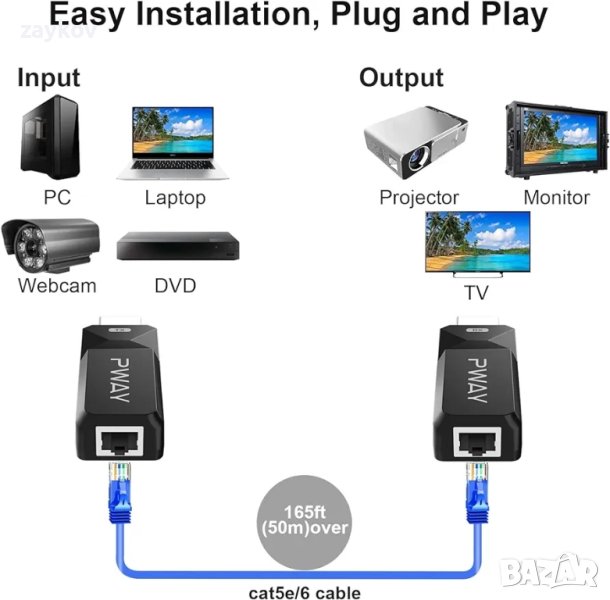 Адаптер за разширение на дълги разстояния: Изпращайте аудио видео до 165 фута/50 м чрез мрежов кабел, Cat6/7 макс. 50 м, Cat5e макс. 40 м.