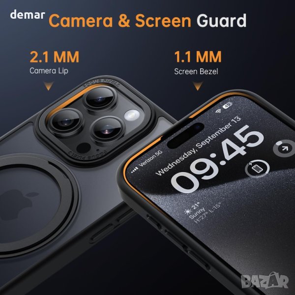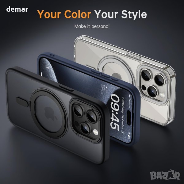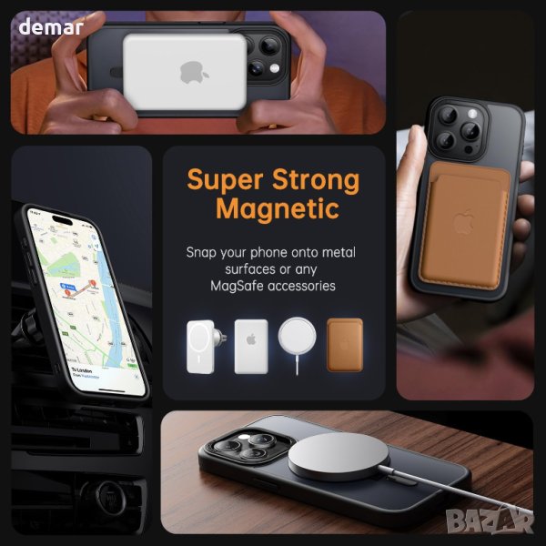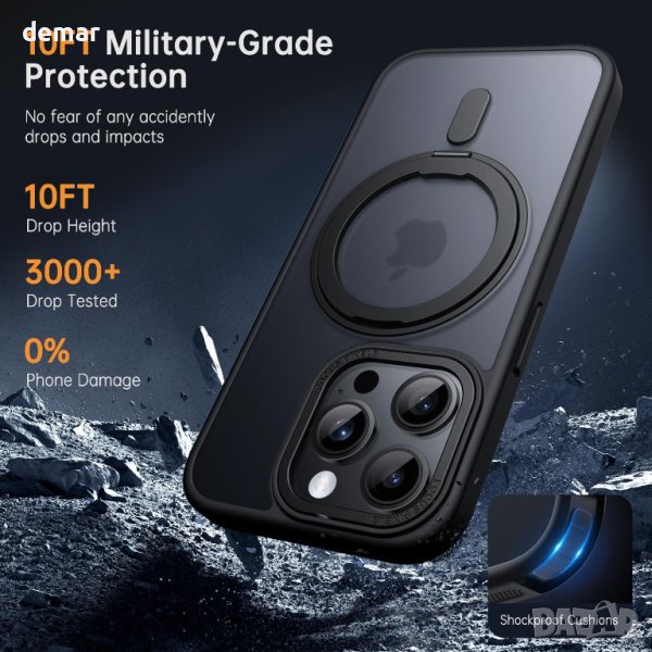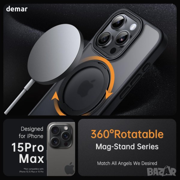 Издигнете своя iPhone 15 Pro Max с нашия многофункционален калъф, предназначен за повече от защита. Той разполага с мощни магнити, издръжлива 360° въртяща се пръстеновидна ръкохватка, стойка за гъвкаво гледане и военна издръжливост, тествана за над 30 000 употреби. Магнитният масив Halbach с 24 неодимови магнита осигурява оптимално безжично зареждане и пълна съвместимост с екосистемата MagSafe. Въртящата се стойка с пръстен предлага удобство за различни дейности, удвоявайки се като сигурен държач за селфита, всичко това в елегантен дизайн. Нашият удароустойчив калъф, способен да издържи 10 000 изпускания от височина до 12 фута, включва 360° въздушни възглавници и технология X-SHOCK за устойчивост на удар, плюс допълнителна защита за камерата и екрана. Изработен от първокласен TPU, той съчетава тънкост, стил и комфорт, осигурявайки сигурно захващане и гладък, изтънчен вид.
