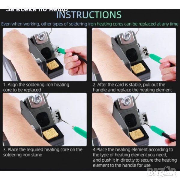 Когато срещнете голяма спойка, докоснете скобата два пъти с дръжката и станцията за запояване ще повиши температурата при първоначално зададената температура с 80 ° C за 15 секунди, до края автоматично ще се възстанови, удобно и практично, не необходимо е повече време Регулирайте температурата ръчно.