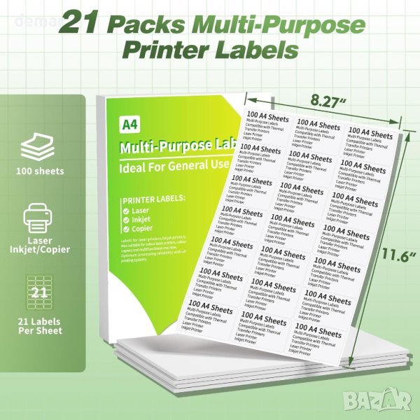 Тези многофункционални лепкави етикети са подходящи за използване с термотрансферния принтер Itari P831, както и с всякакви лазерни, мастиленоструйни принтери или копирни машини, осигурявайки безпроблемна интеграция в различни системи за печат. Всеки пакет съдържа 100 листа етикети с размери 63,5 mm x 38,1 mm, общо 2100 стикера, отговарящи на ежедневните нужди. Тези висококачествени етикети са екологични, не съдържат BPA и BPS и не са токсични, насърчавайки здравето и устойчивостта. Проектирани за издръжливост, те разполагат с топлоустойчиво и антикорозионно покритие и използват силно горещо залепване, което ги прави подходящи за широк спектър от повърхности, без да оставят остатъци при отстраняване. Идеални както за домашна, така и за бизнес употреба, тези етикети могат да служат за множество цели, включително адресно етикетиране, организация на кухнята, бизнес брандиране, пощенски разходи и други, предлагайки практично решение за различни нужди от етикетиране.