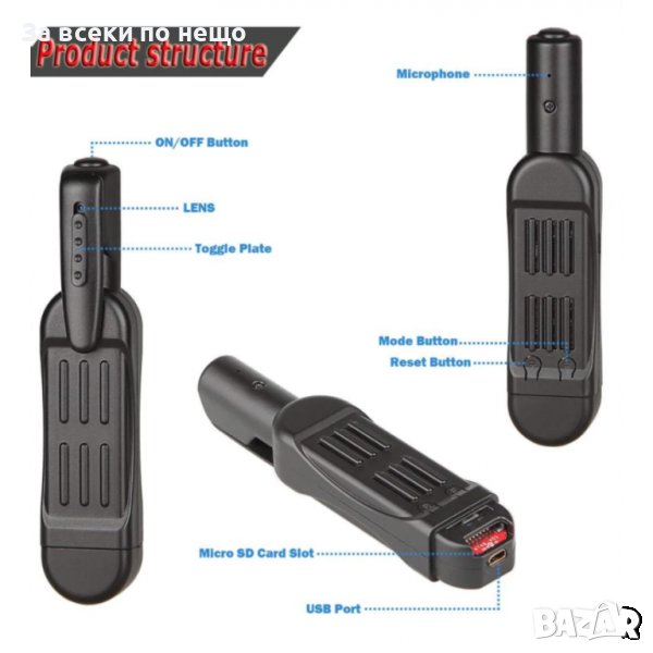 Също така в компонента на шпионската писалка влиза микрофон, който ще ви помогне заедно с шпионската камера да направите аудио-видео записи с много добра разделителна способност.