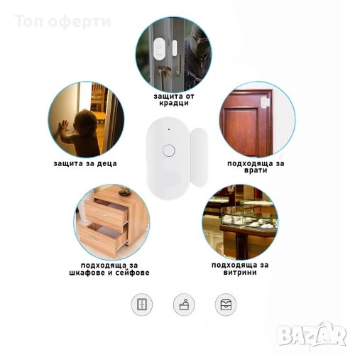 Безжична аларма за врата и прозорец с Wi-Fi известие към телефона - полезен продукт, който ще Ви информира незабавно при влизането взлом през врата или прозорец във Вашият дом, магазин или офис. Получавате известие на смартфона при всяко едно отваряне и затваряне, дори може да следите история.