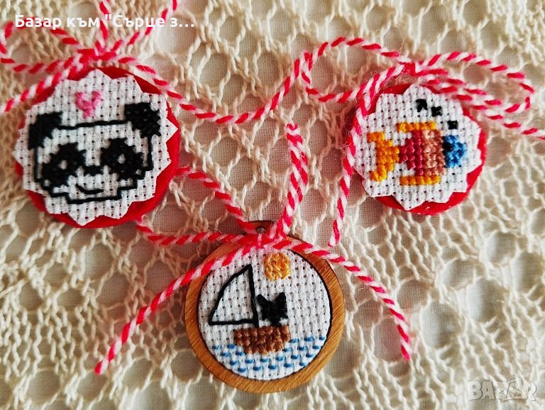 17 Бродирани мартенички или колиета - по 9 лв Панда, Котка-мореплавател и Рибка