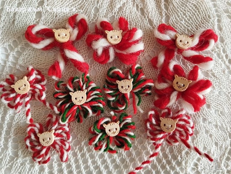 8 Мартенички за закачане по 3 лв (вълна и дървено коте)