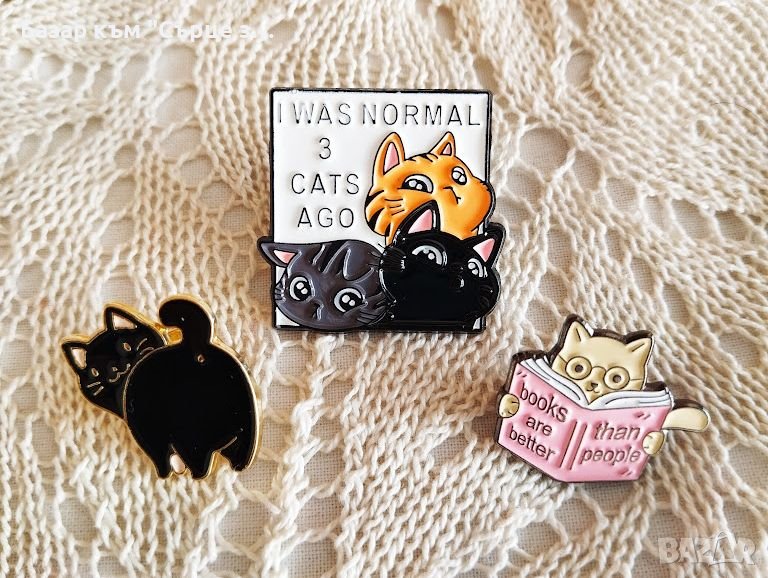 10 Пинчета, подходящи и за мартенички - черно коте и четящо коте по 11 лв; I was normal 3 cats ago 13 лв