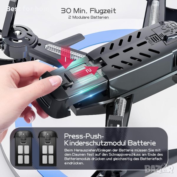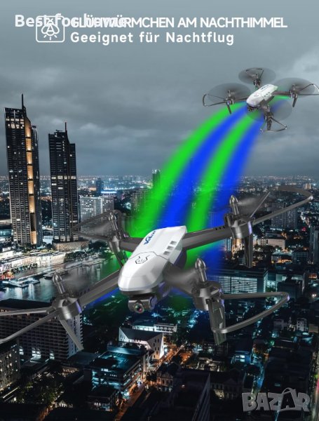 【Естетичен дизайн】: нов перлено бял корпус със синьо-зелени LED светлини на връзките на дрона за по-хладен визуален ефект при полет през нощта.