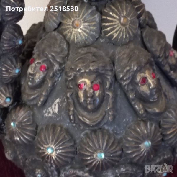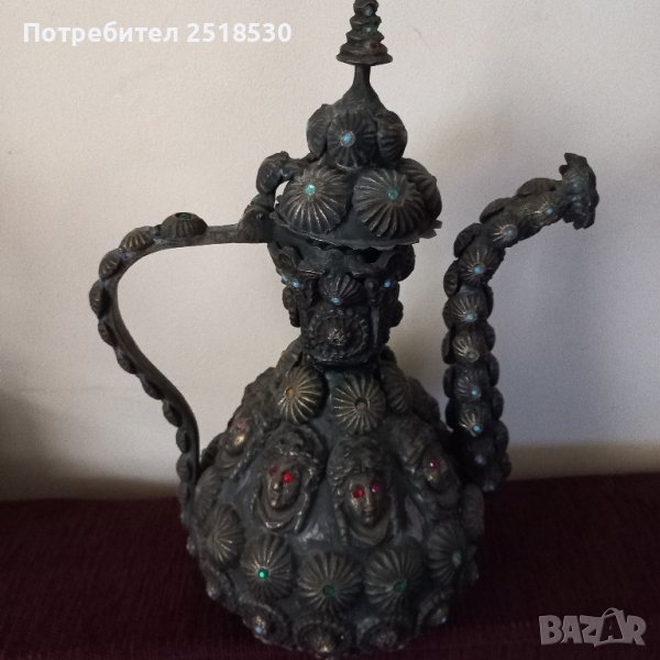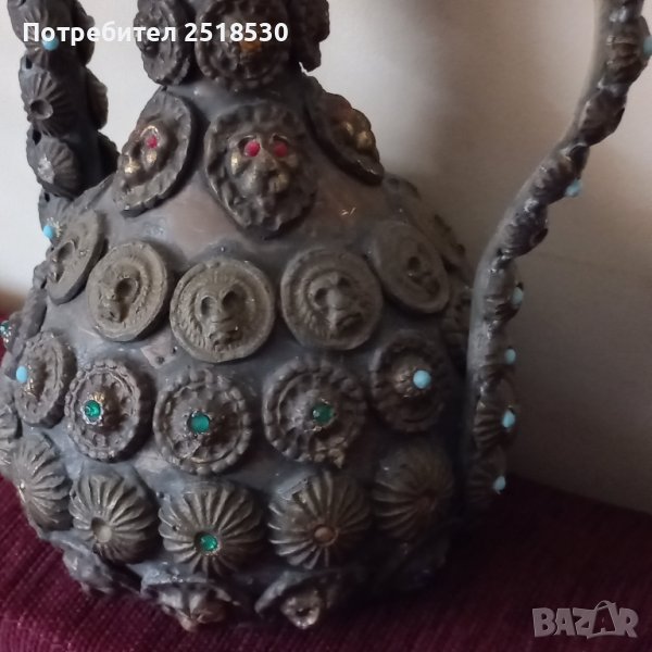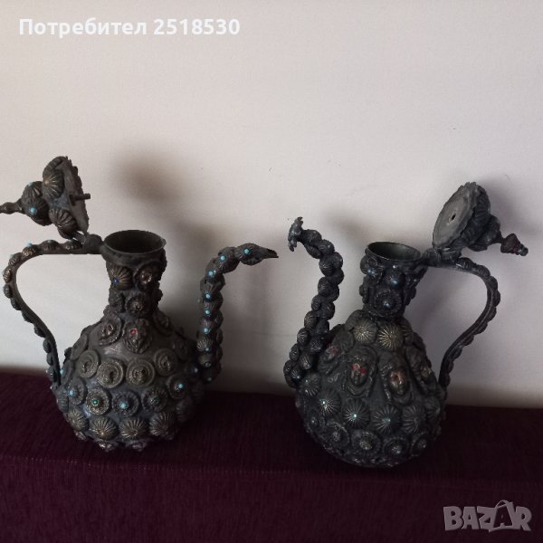 Старинни масивни бронзови ибрици от края на 19 век.На всеки един има ръчно залепени с калай над 110 бронзови апликации, една част украсени с камъни.Общо тегло над 6 килограма,30 см.височина,маркирани на дъното с корони,вижда се на снимките.На едното съдче чучура и няколко апликации бяха отлепени и са залепени с лепило,всички апликации са налични.Изпращам старателно опаковани до удобен за Вас адрес.Прекрасни за интериор в дома.Цената е обща.