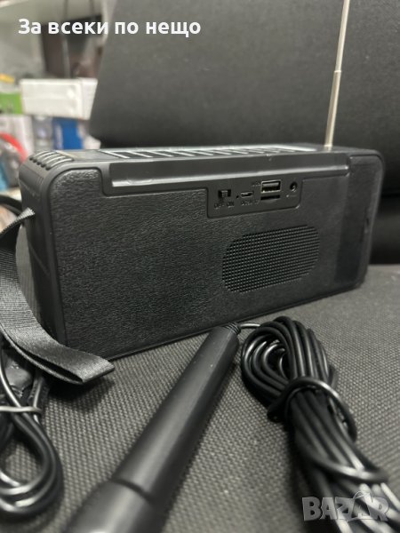 Преносимо радио с висококачествен стерео звук и практичен размер, комплект с мини микрофон. Има интегриран соларен панел в горната част за допълнителен живот на батерията и странично LED фенерче.
