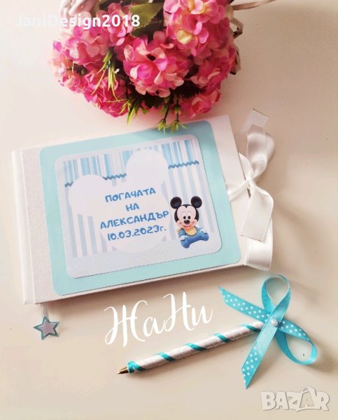 Книга за пожелания с химикал за бебешка погача, рожден ден, кръщене,