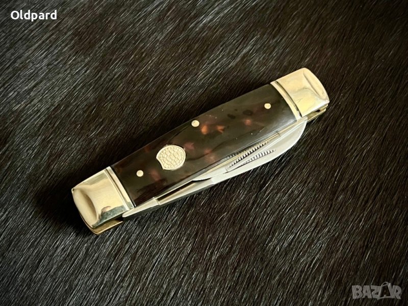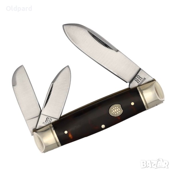 Колекционерски джобен сгъваем нож с три остриета RR Whittler Tortoise. Много хубаво джобно сгъваемо ножче. Дължина в сгънато състояние 9,86 см. Три остриета от неръждаема стомана със сатенено покритие. Дължината на голямото острие е 7,5 см. Дръжка с текстура и шарка на костенурка. Кутия за подарък. Този нож е прекрасен и оригинален подарък.