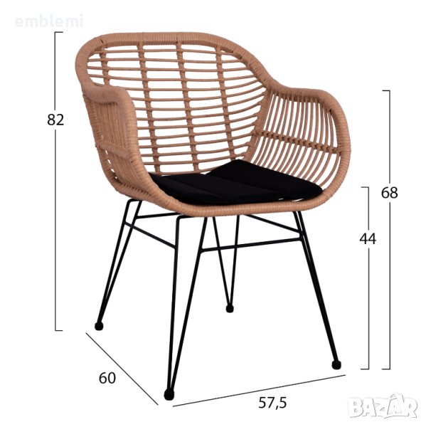 Седалката и ръцете са изработени от синтетичен ратан в ракита.