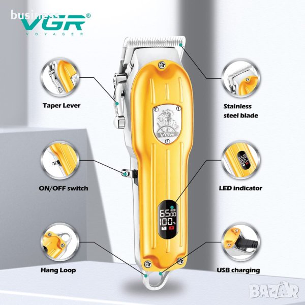 Машинката притежава стоманено острие, за да осигури бързо и ефективно бръснене или подстригване. В средата на предната част на държача на машинката има LCD дисплей, който показва капацитета на батерията. Машинката включва шест приставки с различни размери и предпазител на острието, с които можете лесно да контролирате дължината на косата, която искате да подстрижете и да създавате различни прически. Машинката се захранва посредством USB кабел включен в комплекта. Дизайнът на тримера е изчистен и елегантен и подканва за прецизна работа за оформяне на брада, мустаци и ефектна мъжка прическа.