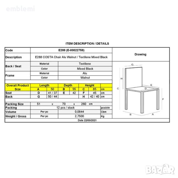 • Спецификации: Алуминиева тръба: D.28x1.2mm Седалка и облегалка с textilene 4x4