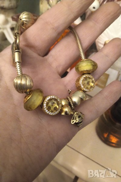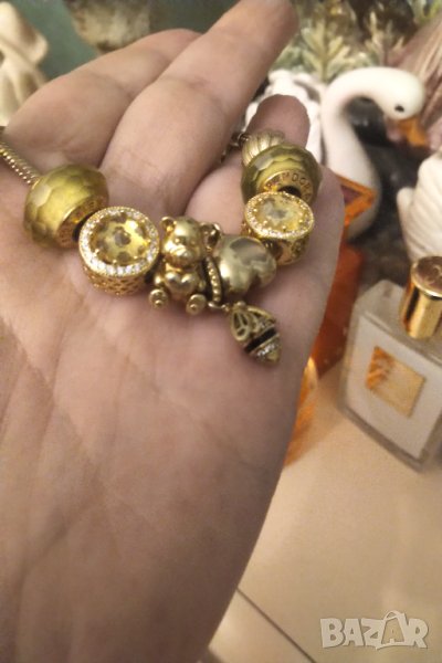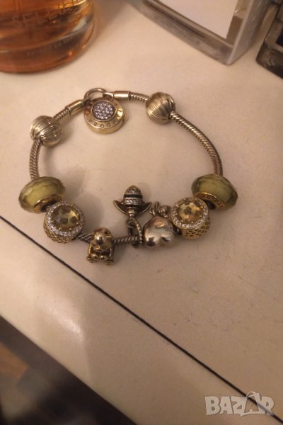 НЕ СЕ ПРОДАВА ПО ОТДЕЛНО 100% оригинална сребърна пандора с жълта 14 каратова позлата и 9 талисмана ( всички оригинални с печати .) два от който стопери Дължина 18,5.Носена е веднъж по повод .Състоянието и е повече от перфектно ,продава се без кутия и сертификат не пазя такива неща Може да си проверите цената на всеки талисман ..ЦЕНАТА Е ЗА ЦЯЛАТА ГРИВНА С ТАЛИСМАНИТЕ .НЕ СЕ ПРОДАВАТ ОТДЕЛНО .КОМЕНТАР НА ЦЕНАТА НЕ Е ВЪЗМОЖЕН БАРТЕРИ НЕ МЕ ИНТЕРЕСУВАТ .