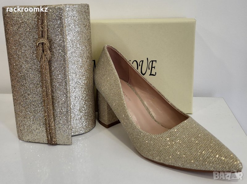 Дамски златисти обувки с квадратен ток модел: 6227 gold