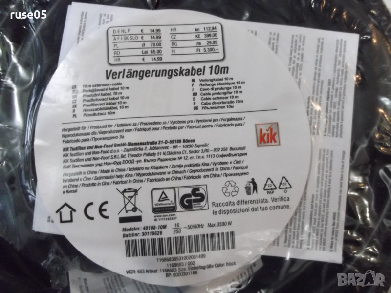 Удължител черен - 10 м. нов → Обява 44279773