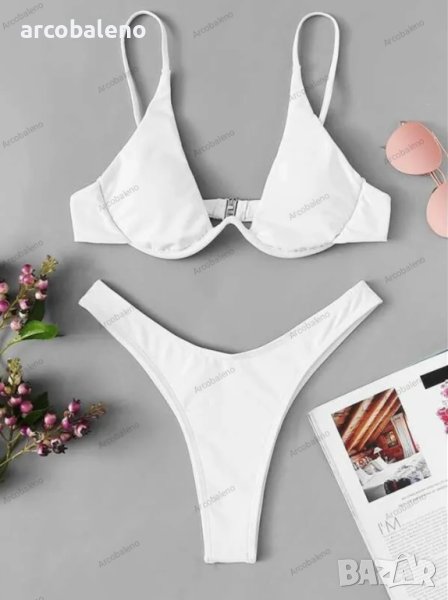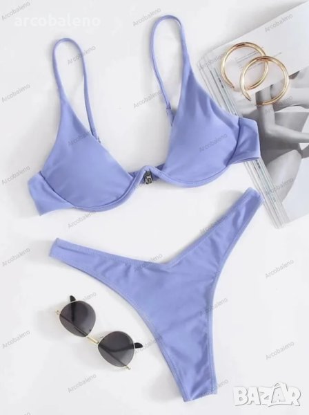 Секси бикини едноцветен бански костюм с банели, 13цвята