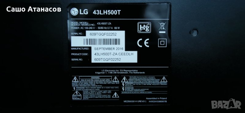 Модули от телевизор LG 43LH500T със счупена матрица ( TPT430H3-HVN01.U REV:S271D )
