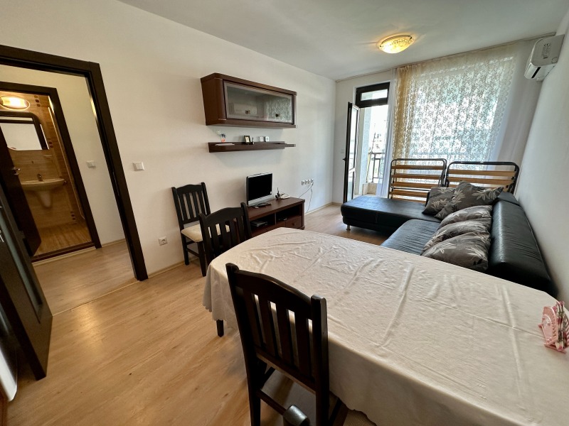 Прекрасен апартамент в Бутиков к-с и изглед към паркинга на к-са. Обзаведен 2-стаен апартамент с една спалня за целогодишно ползване в к-с Радуга 2.