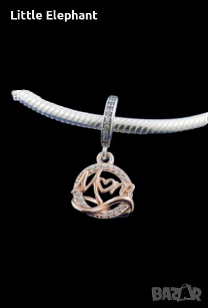 Сребърен висящ елемент,Пандора,Rose Gold"Mom"-незаменима/нов → Обява 44285607