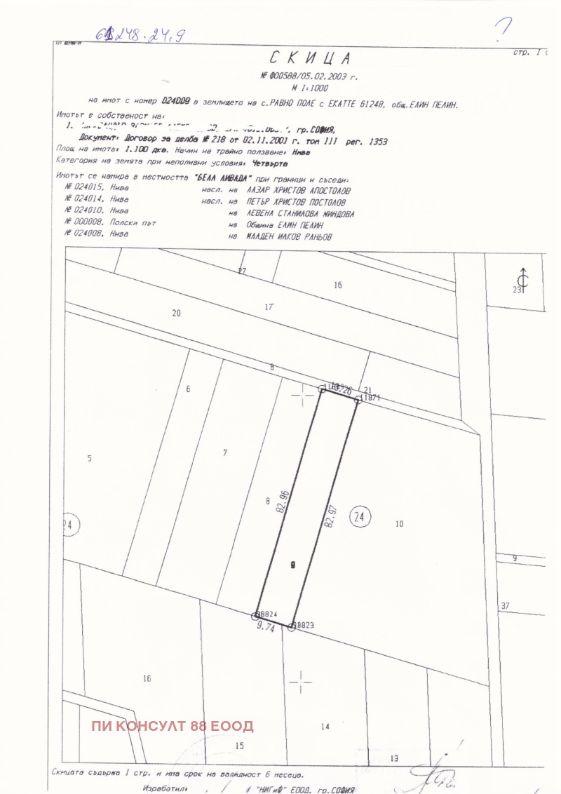 Продава ПАРЦЕЛ, с. Равно поле, област София област → Обява 44287318