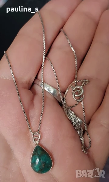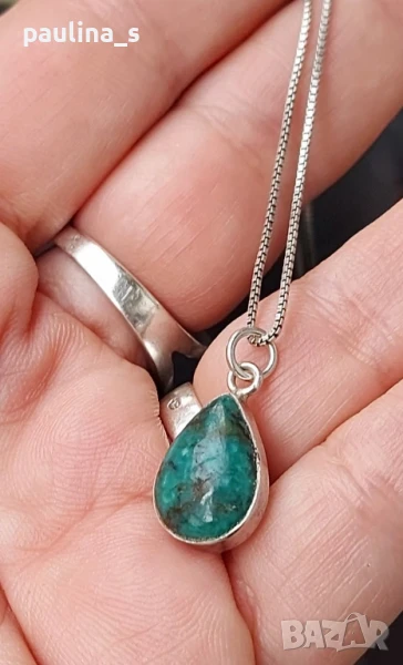 2️⃣ Колаж / Винтидж / Рядка находка / Сребърно колие с Ейлат Истейт камък / проба 925. Цената е крайна 89,99лв / 45 евро. Винтидж / Рядка находка / Сребърно колие с Ейлат Истейт камък (хризокола) - камъкът на цар Соломон и Късмета в любовта и във финансовите начинания - "евpeйски камък". Има и лечебни свойства, рядка находка, с реални снимки. Не се продава на грамаж. Дължина на