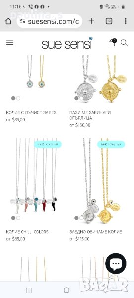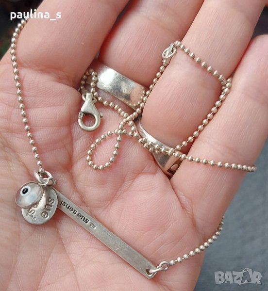 1️⃣. Колаж / "Sue Sensi". Цената е крайна 89,99лв / 45 евро. Амулетно марково колие с Окото на Назар за късмет и любов. Дизайнерски бранд, сребърно колие с Окото на Назар за късмет и послание за любов. Има множество маркировки, закриля късмета на любовта. Дължина 56см, синджирът е на топчета, не се продава на грамаж! Уникално е!