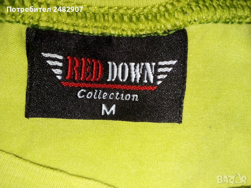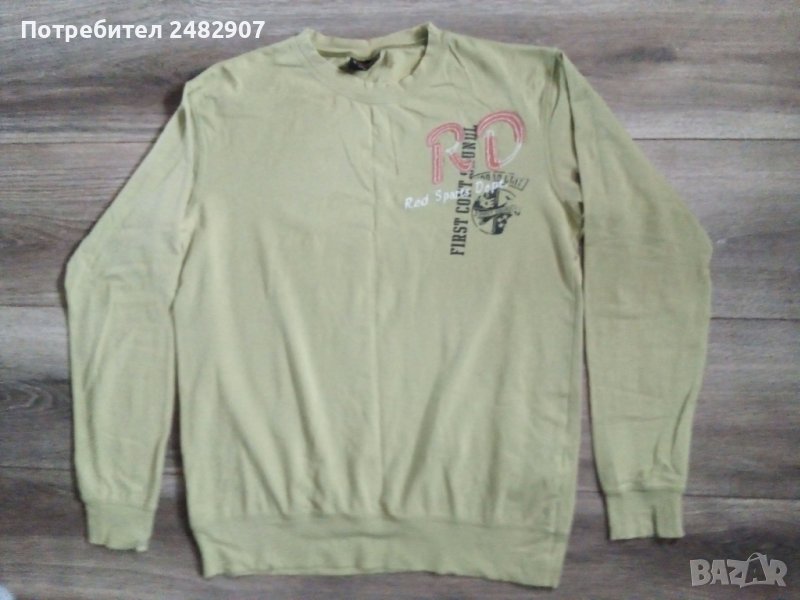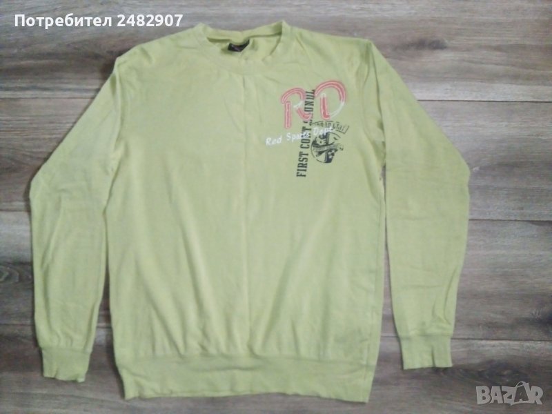 Мъжка тънка блуза от зелено трико с дълъг ръкав, размер М. Ширина в раменете - 43 см, ширина под мишниците - 50 см, ширина в долната част - 42 см, дължина от рамото до долу - 62 см, дължина на ръкава от рамото - 55,5 см. Запазена с нормални следи от износване.