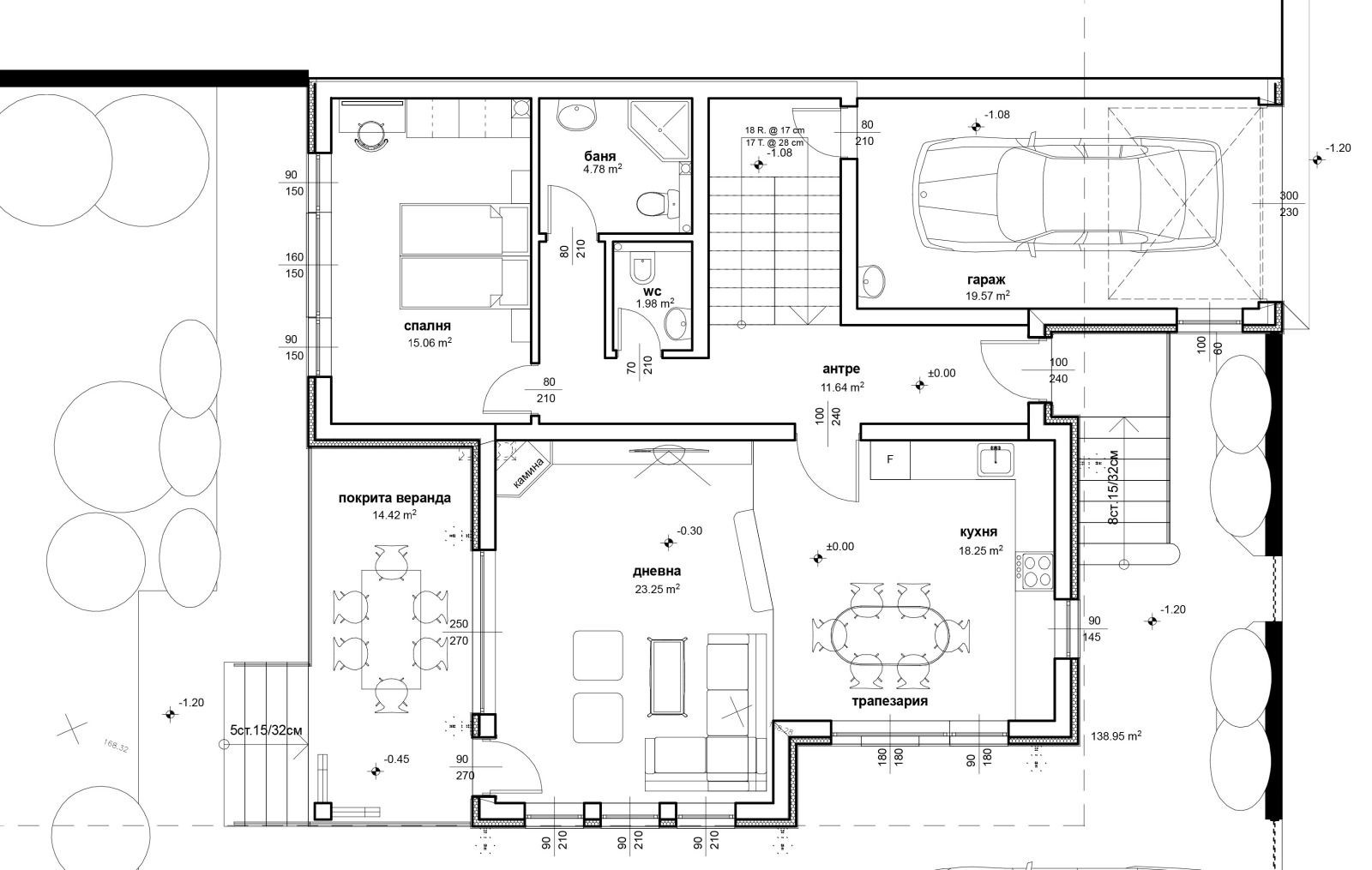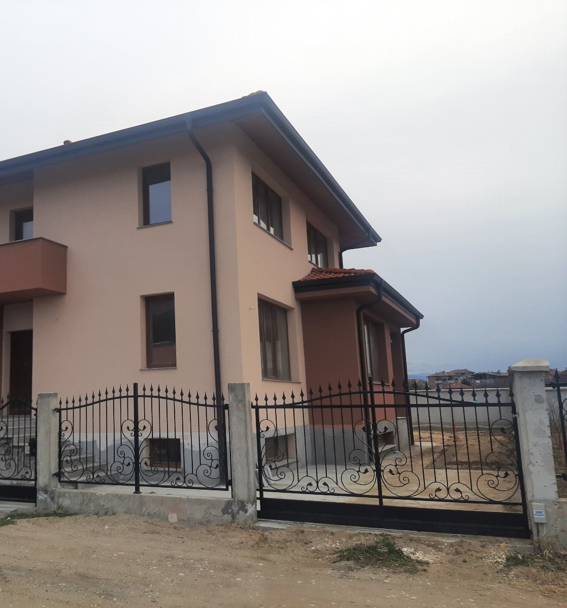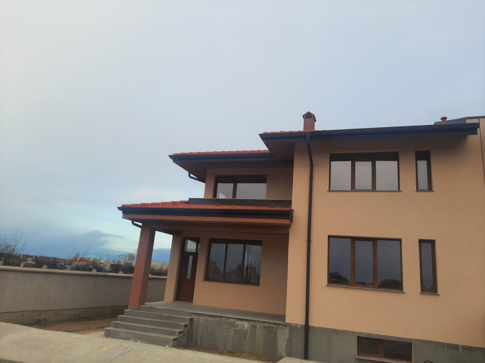 Построена е по всички съвременни стандарти и изисквания за качество, ще бъде издадена на тапа, шпакловка и замазка, ограден двор. Гараж с топла връзка, врата с дистанционно. Дворът е с площ от 500 кв.м., ограден с ковано желязо, има гледка и към Пловдив и към планината.