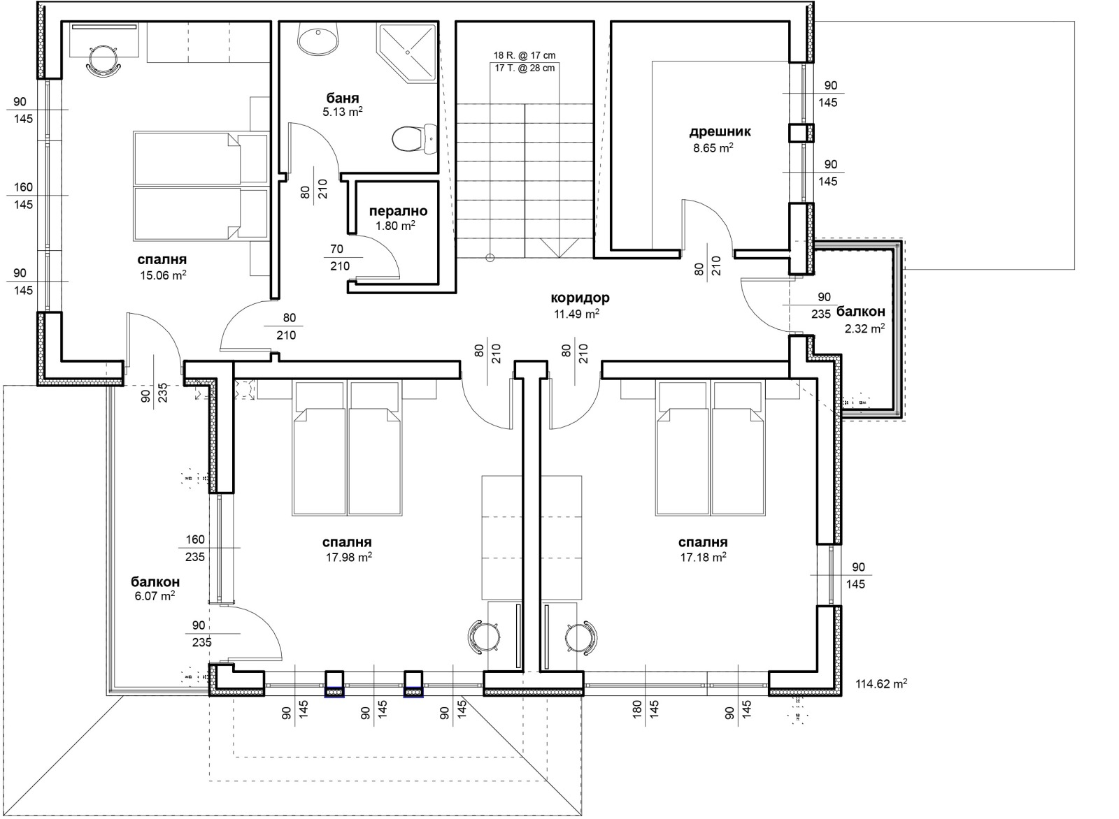 Оф. 78121 Предлагаме Ви Нова къща с РЗП- 353 кв.м, двуетажна - всеки етаж се състои от хол с трапезария и кухня, две спални и две бани.