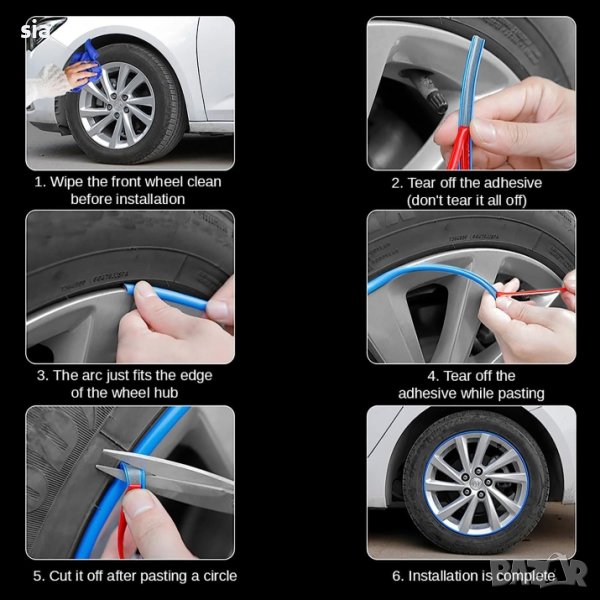 Лесен монтаж.Тази предпазна лента за ръба на джантата на автомобила може да абсорбира удари и да предотвратява надраскване или малки повреди , а освен това е чудесна декорация за вашия автомобил.