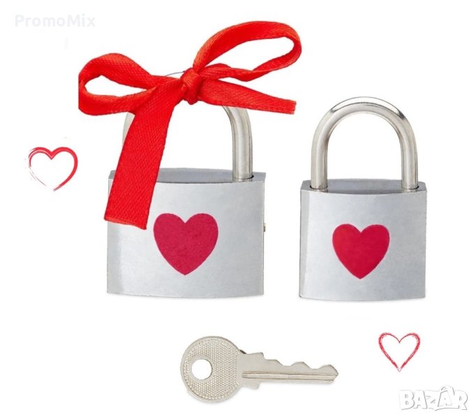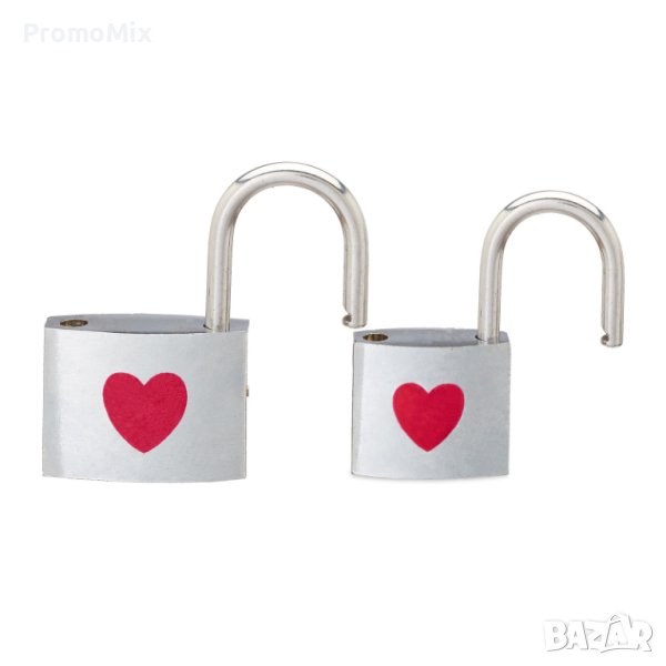 Комплект от 2 броя катинар Relaxdays 10024064 Комплект катинари за влюбени с принт сърце 2 размера