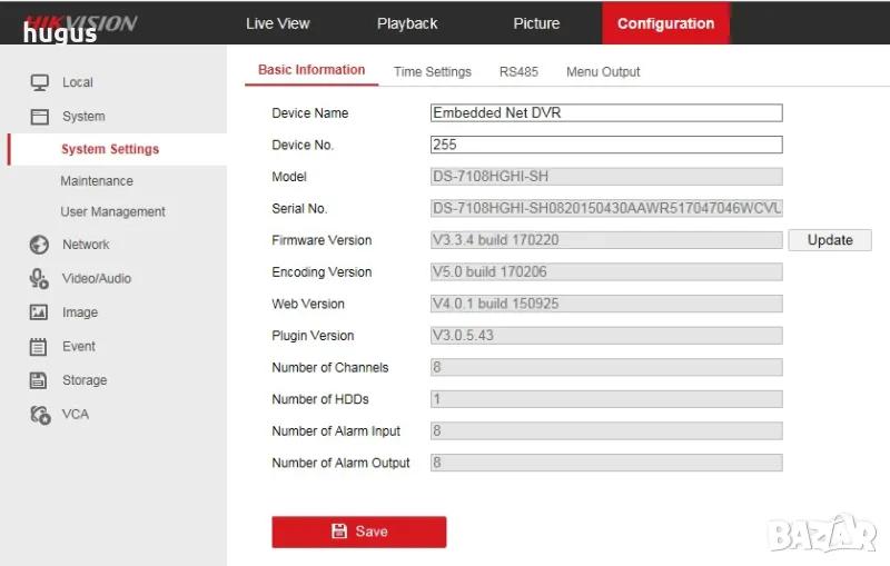 Употребяван 8 канален цифров видеорекордер HIKVISION