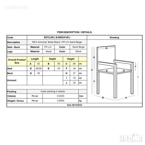 Стол градински трапезен Rex Бял с черни крака, снимка 1 - Столове - 44295043 Стол градински трапезен Rex Бял с черни крака, снимка 2 - Столове - 44295043 1/2