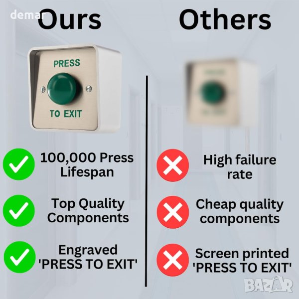 SecureMyDoor Outdoor IP65 Бутон НАТИСНЕТЕ ЗА ИЗХОД, превключвател за отключване на врата