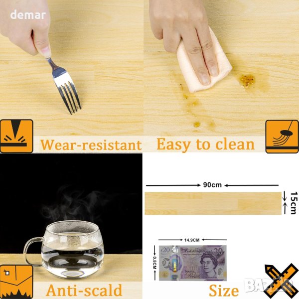 Тези удобни самозалепващи се подови плочки предлагат лесна употреба със своя дизайн за отлепване и залепване, което ги прави идеални за проекти „Направи си сам“ във всички стаи във вашия дом. Те прилепват най-добре към гладки, плоски и сухи повърхности, което ги прави универсални за използване в кухни, бани, всекидневни, спални и коридори. Плочките са водоустойчиви и маслоустойчиви, предпазващи от надраскване и съвместими с нискотемпературно подово отопление. С тънка дебелина от 0,6 mm, тези винилови плочки са лесни за рязане и се побират във вашето пространство. Всяка плочка е с размери 15x90 см, като 16 плочки покриват площ от 2,16 квадратни метра.