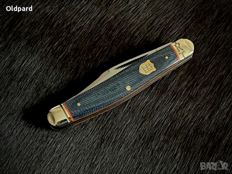 Много хубаво джобно сгъваемо ножче. Дължина в сгънато състояние 10,20 см. Три остриета от неръждаема стомана със сатенено покритие. Дължината на голямото острие е 8,0 см. Дръжка с текстура и шарка на Denim микарта. Кутия за подарък. Този нож е прекрасен и оригинален подарък.