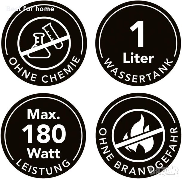 Освен това декоративната камина има резервоар за вода, който се почиства лесно и е с вместимост до 1 литър.