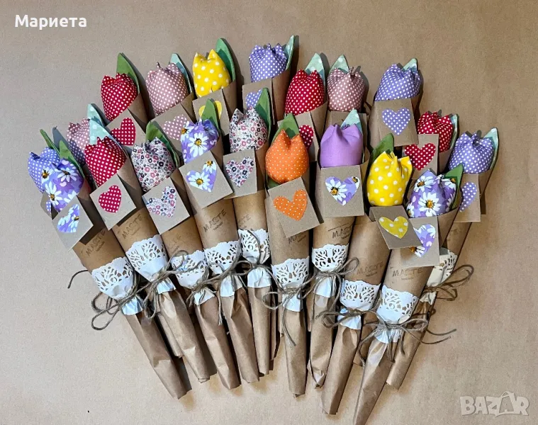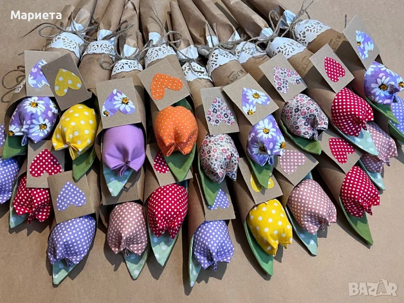 Текстилни Лалета Ръчна Изработка Цветя от плат Букет лалета Цветя за осми март → Обява 44297795