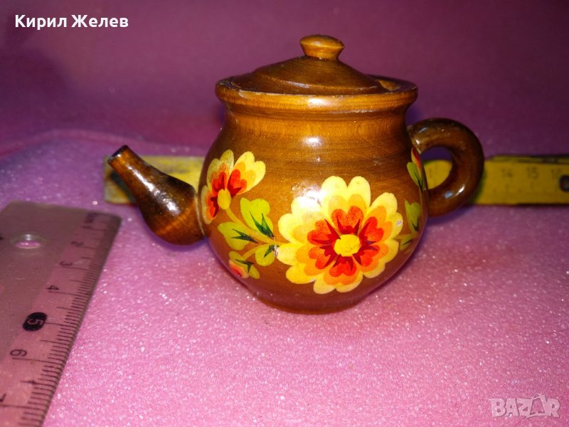 МИНИАТЮРНО ДЕКОРАТИВНО РЪЧНО РИСУВАНО ДЪРВЕНО ЧАЙНИЧЕ За КОЛЕКЦИЯ ИНТЕРИОР 42866