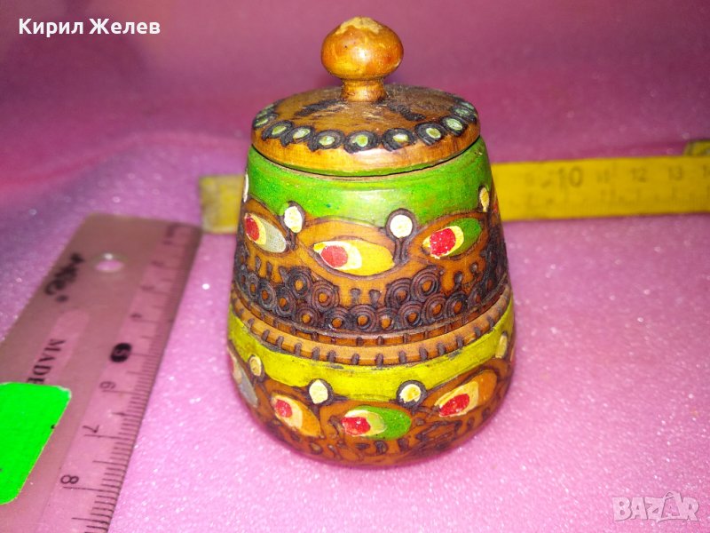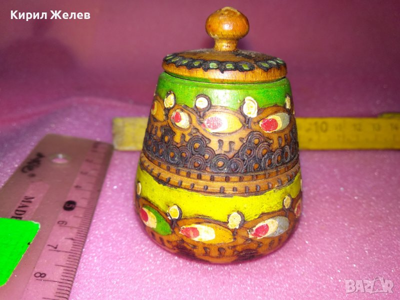 СТАРА ПИРОГРАФИРАНА РЪЧНО РИСУВАНА ЕТНО СТИЛ ДЪРВЕНА СОЛНИЧКА 42531 → Обява 44301618