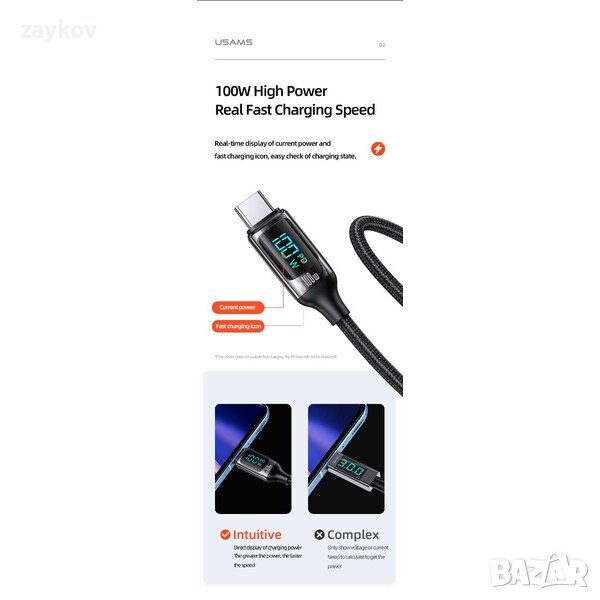 Кабел за бързо зареждане и данни USAMS SJ559 U78 Type-C To Type-C 100W