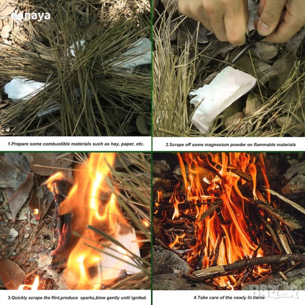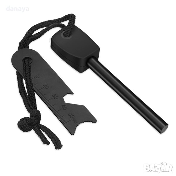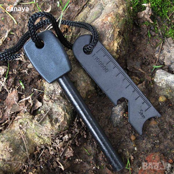 Необходим аксесоар в екипировката на всеки планинар, скаут, ловец или всеки, който може да изпадне в критична ситуация. Може да издържи над 15000 запалвания, като може да се използва дори в мокро време и при минусови температури. Лека, компактна и лесна за използване. Работи на принципа на кремъка, като при триене на двете части се произвеждат искри, чрез които можете да си запалите огън. Комплектът може да се ползва още като отварачка за бутилки, линийка за работа в мащаб 1:10000, шестограм.