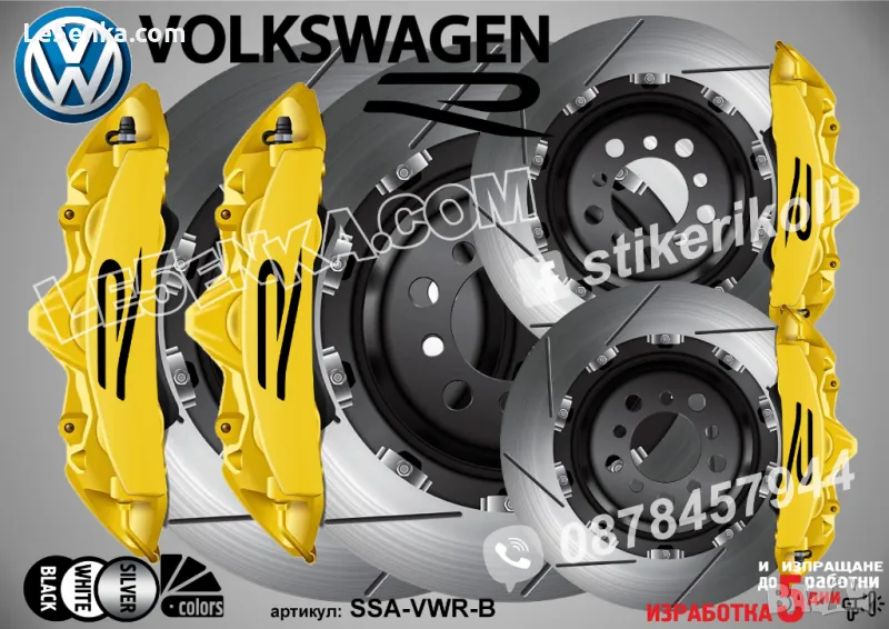Надписите са изработени от качествено автомобилно фолио. Могат да се лакират. Цената е за комплект от 4 бр. от една и съща разцветка - бяло, черно или сребърно. Размерите на предните са 8 см., а на задните 5 см. Спирачните апарати са различни модели и големини, поради това моля съобразете дали тези размери са подходящи за вашите апарати - при възможност и с уговорка е възможно, размерът на надписите да се измени.