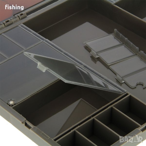 Новата кутия за шаранджийски аксесоари NGT Dynamic Tackle Box - Terminal Tackle / Rig Storage Box System е система за съхранение на шаранджийски аксесоари и монтажи, и дори по-големи предмети като ножици и игли за стръв. Тъмно зелената кутия за шаранджийски монтажи NGT е снабдена с 6 магнита и прозрачен вътрешен разделител.
