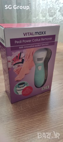 уредя за пети Pedi Power ”VITALmaxx” автоматично извлича замърсявания и частици от кожата директно по време на употреба - за уникалния плюс в комфорта и хигиената!