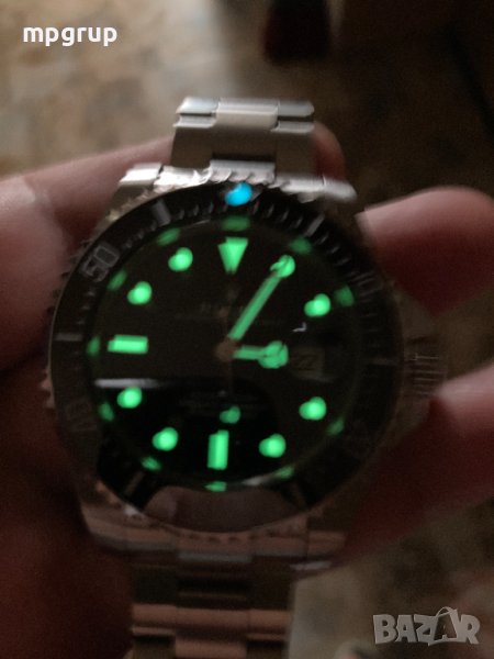 часовника е в перфектно състояние 9,5 от 10 ,стъкло сапфир с циклоп на датата ,коронка на винт за по добра водоустойчивост , керамичен безел не се драска ,механизъм Сейко, размер на корпуса 43мм без коронката ,метална плътна верига много добро изпълнение за предпочитане лично предаване за гр Бургас гр Разград и региона